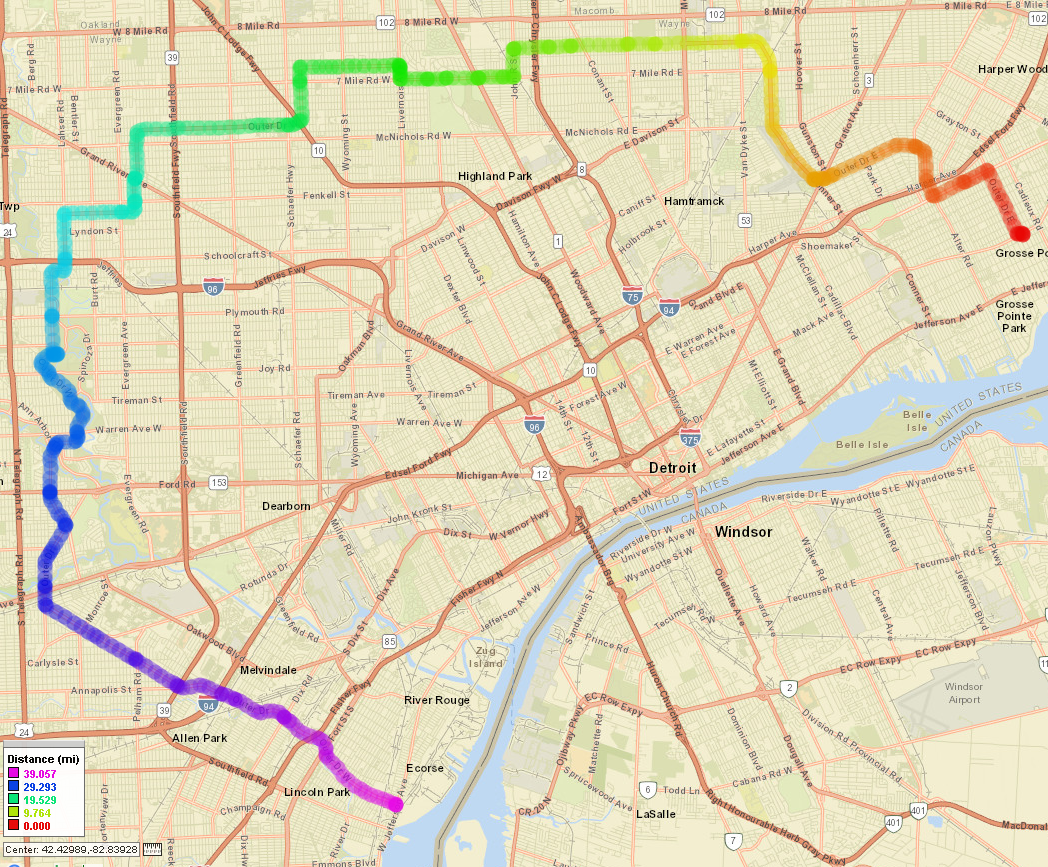How can it cross Southfield freeway , I-96 , Michigan Ave , Southfield freeway again , and I-75 ?